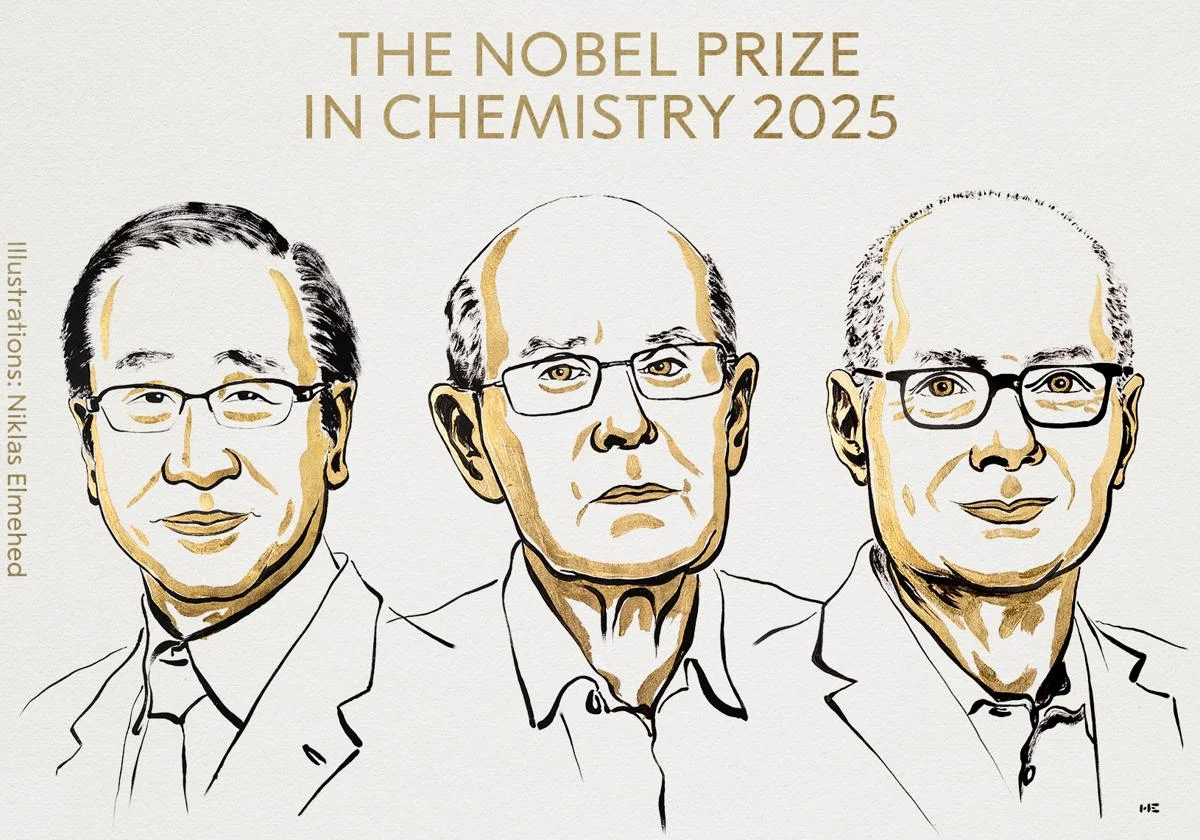 La Real Academia Sueca de Ciencias otorgó el Premio Nobel de Química 2025 a los científicos Susumu Kitagawa, Richard Robson y Omar M. Yaghi por el desarrollo de los materiales metal-orgánicos, conocidos como MOF (por sus siglas en inglés, Metal-Organic Frameworks), que han revolucionado la forma en que la química y la física abordan grandes desafíos tecnológicos y ambientales.